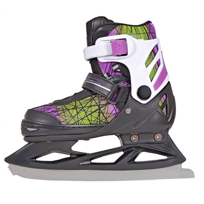 Удобный, быстрый и надежный механизм застегивания состоит из шнуровки, клипсы с фиксатором и липучки. Лезвие из нержавеющей стали со специальным защитным напылением обеспечит наилучшее скольжение конька по льду. Лезвия имеют заводскую заточку. Материал колес на роликовой раме - полиуретан, диаметр колеса 72 мм, подшипники ABEC-5. Максимально допустимая нагрузка 80 кг.